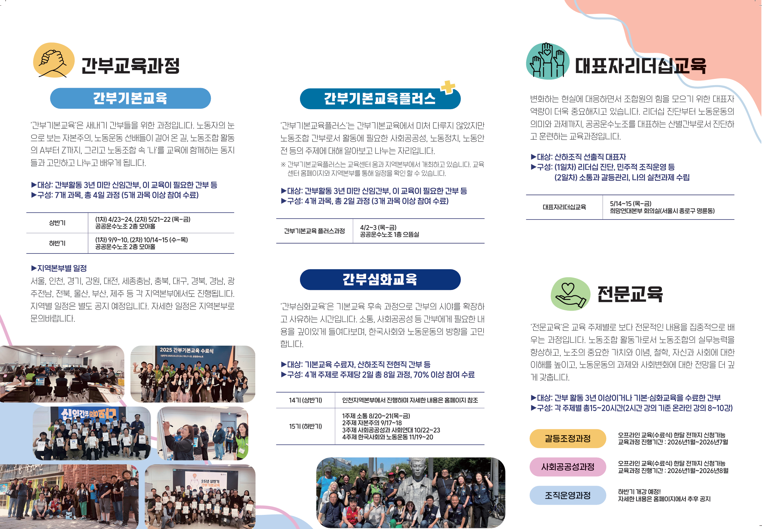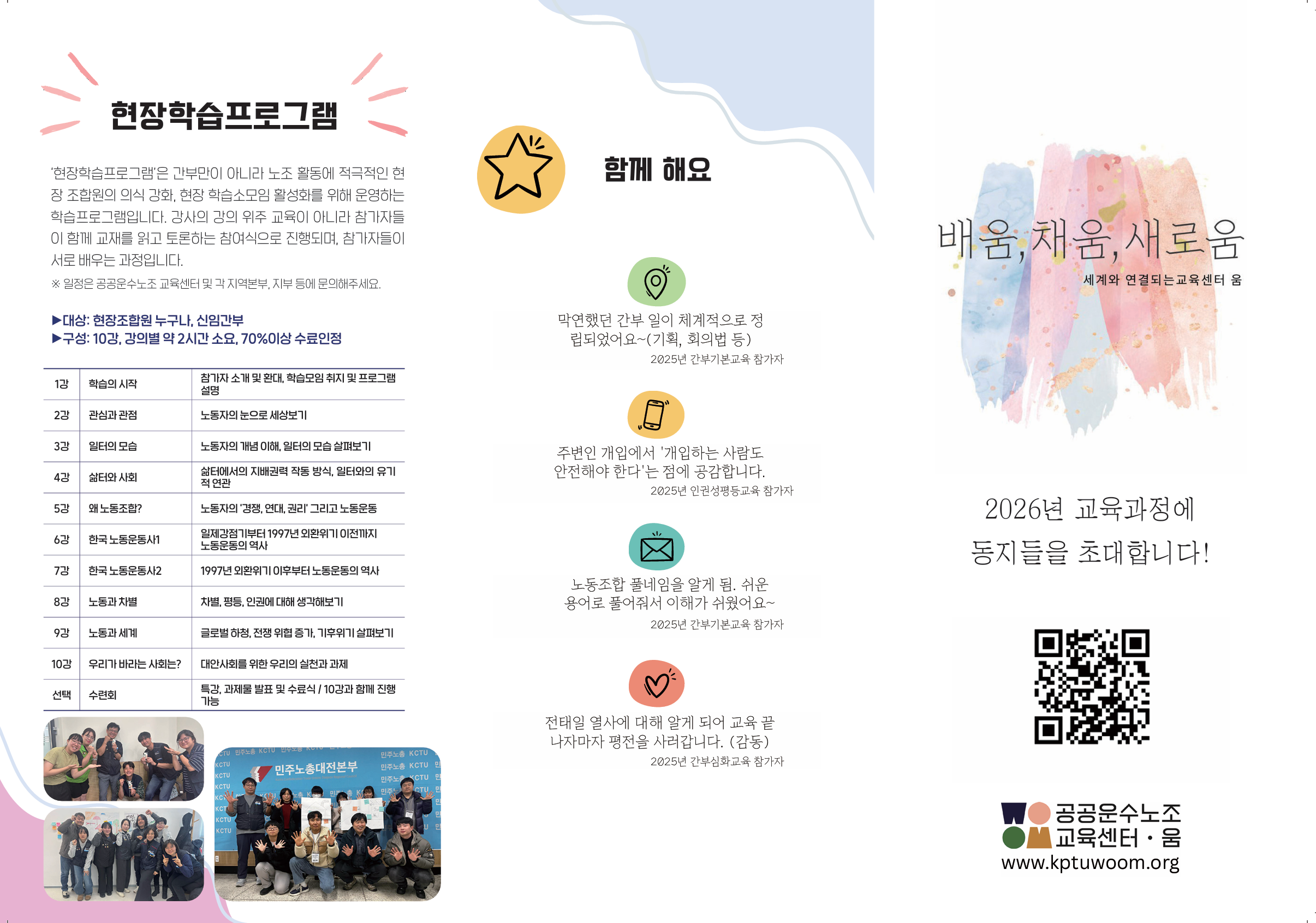 ※ 일정은 공공운수노조 교육센터 및 각 지역본부, 지부 등에 문의해주세요.
