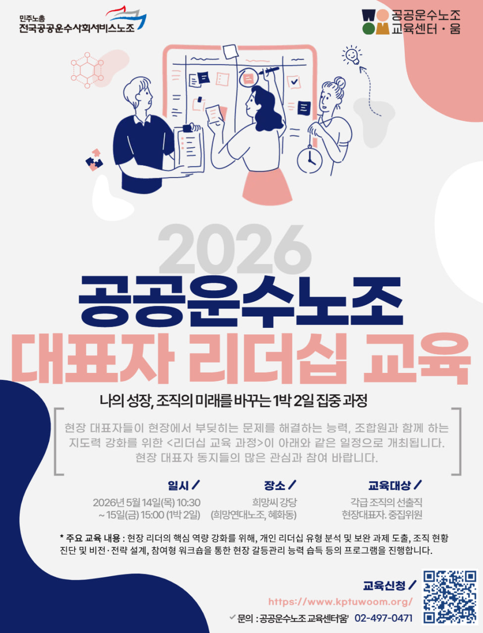 - 과정명: 제5기 공공운수노조 대표자 리더십 교육과정
